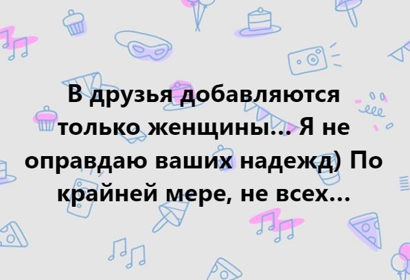 В друзья добавляются только женщины… Я не оправдаю ваших надежд) По крайней мере, не всех…