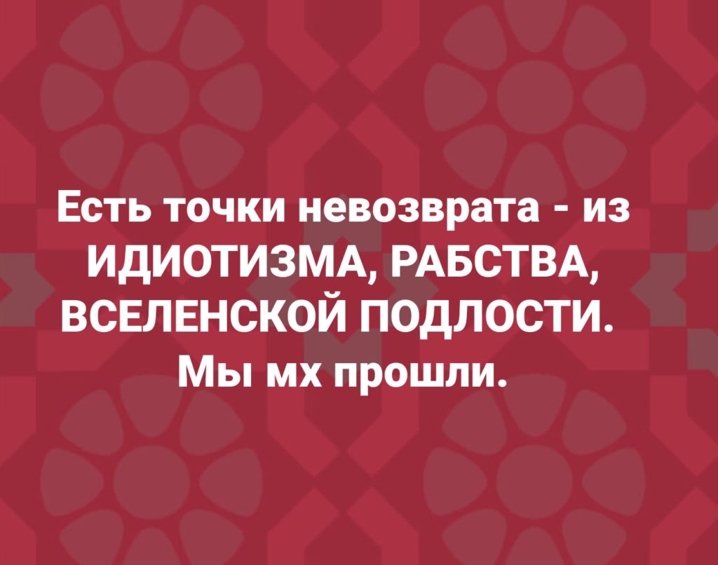 Есть точки невозврата из ИДИОТИЗМА, РАБСТВА, ВСЕЛЕНСКОЙ ПОДЛОСТИ. ⠀